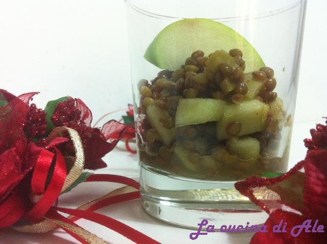 Lenticchie non solo a Capodanno. Eccovi una proposta per un antipasto davvero gustoso che coniuga al top l'amatissimo legume con la frutta: il succo del mandarino e le mele. Sulla tavola di Natale farà un figurone. Qui gli ingredienti per 4 persone